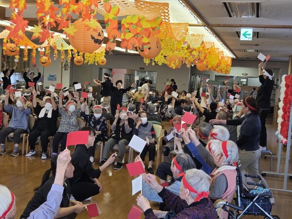 10月23日(木)に運動会を開催しました。旗揚げ、玉入れ、スプーンリレーの3種類を行いました。皆様真剣に参加される姿がみられ、笑顔も多くみられました。結果は赤組の優勝でした。終了後は「楽しかったね」という声が多く聞かれました。