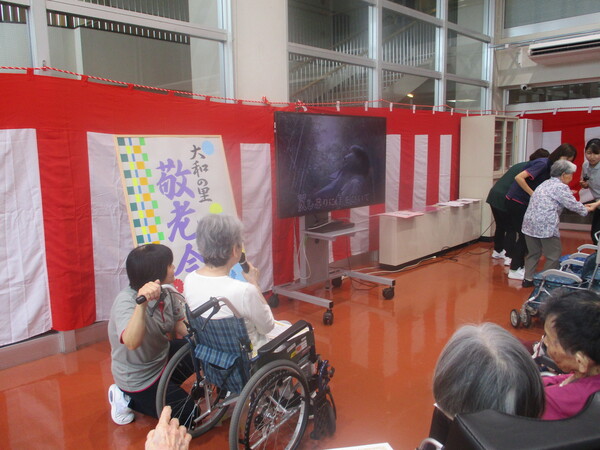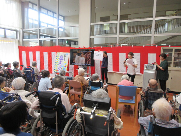 9月26日(金)に敬老会を開催しました。最高齢102歳の方をはじめ、喜寿から百寿になられた15名の皆様のお祝いを行いました。お祝いの後、皆様で敬老にちなんだクイズやカラオケを楽しまれました。
